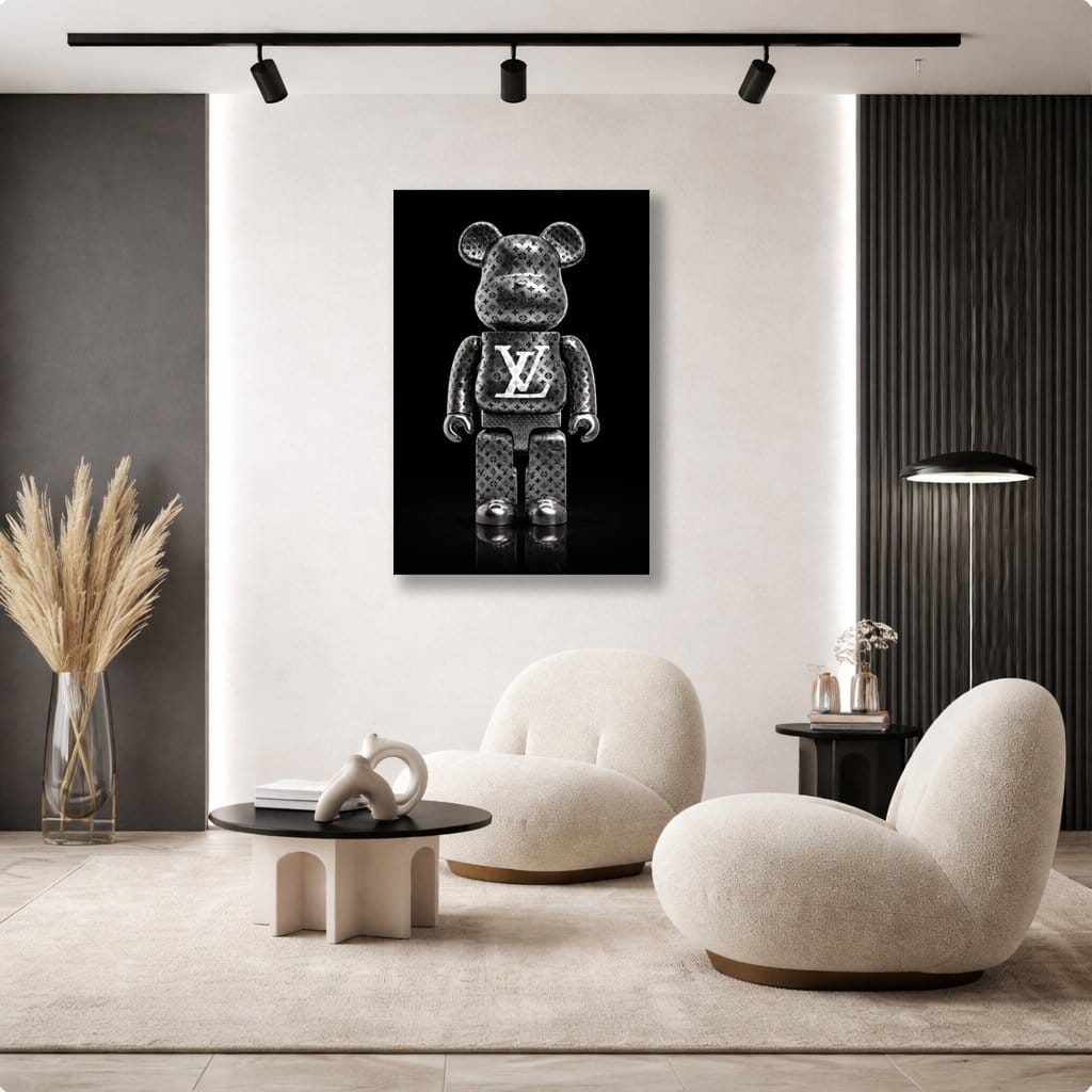 Een krachtig en luxe statementkunstwerk waarin een iconische bear-figuur is uitgevoerd in donker metaal en verfijnde monogramdetails. IRON BEAR staat symbool voor kracht, status en moderne pop-art elegantie.