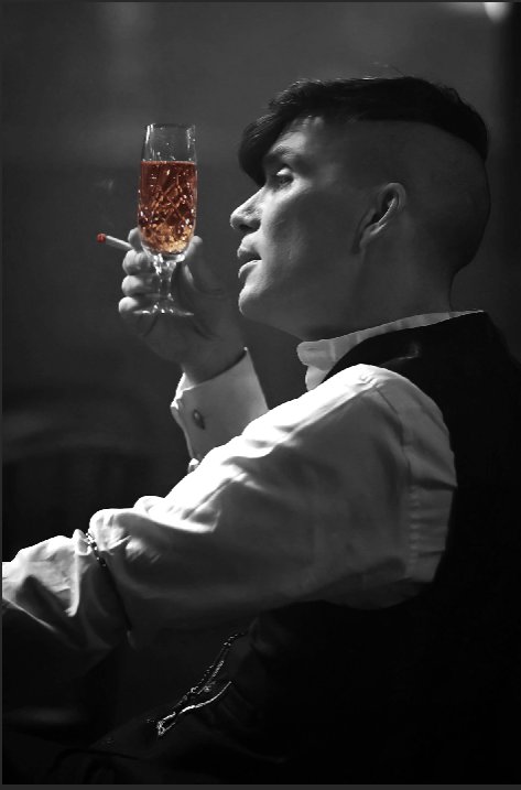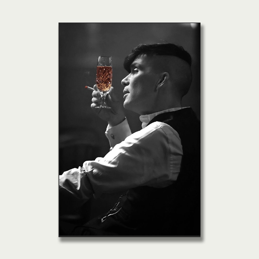 Een iconisch moment van zelfreflectie en absolute controle. Peaky Blinders . Toast to Power vangt de stilte vóór de volgende zet.